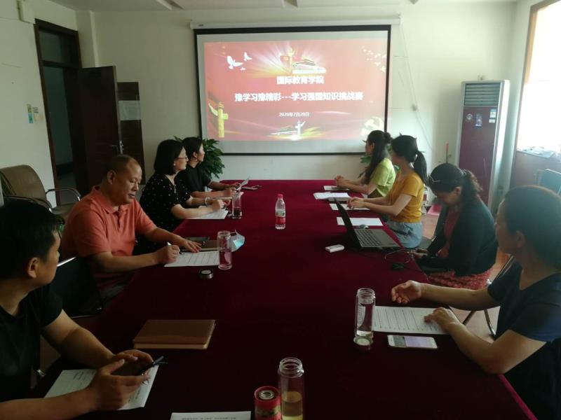 为深入贯彻落实习近平总书记关于加强学习、建设学习大国重要指示精神,建好、办好、用好“学习强国”学习平台,进一步提高广大党员干部群众学习积极性,根据学校“关于开展“豫学习 豫出彩”——第二届“学习强国”河南省千万学员万场答题挑战赛活动的通知”,7月20日下午3点,我院组织全体教工党员在303会议室开展了“学习强国”挑战赛。