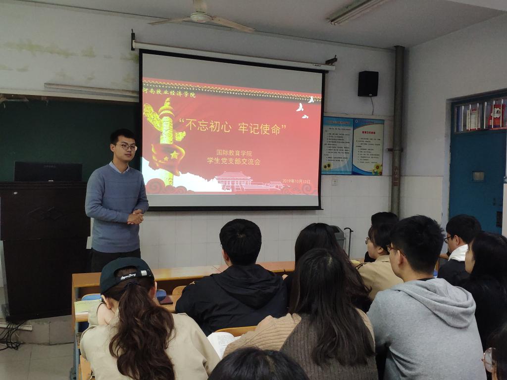 学生党员相继发言,路顺洋同志说道,身为党员应该自觉提高思想政治觉悟并坚定理想信念,从生活中的事情做起,小到转发爱国朋友圈、坚决抵制“港独”,切实在学习上、在思想上、在行动上做到不忘初心;作为suncitygroup太阳新城官网的资助负责人孙志博同志,更是结合自身实际情况,坚持将资助工作为初心,以确保让每一个孩子都不会因为家庭困难而失学。其他党员也相继向我们分享关于他们的对“不忘初心,牢记使命“的心得体会。