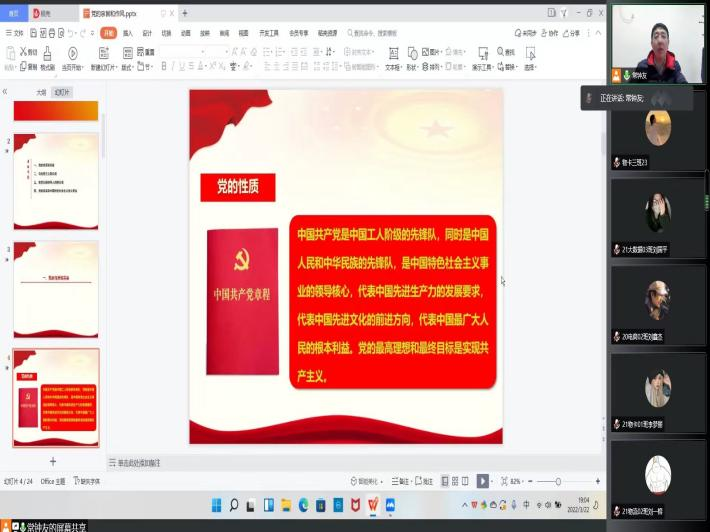 为确保在疫情防控下入党积极分子党课培训工作正常进行,提高学员们的思想素养和政治素质,激励同学们付出实际行动向党组织靠拢,3月22日晚,suncitygroup太阳新城官网通过腾讯会议平台举办线上入党积极分子培训班第一讲。本次党课学习培训活动由我院党委书记贾江讲授,2022年第一期入党积极分子参加。