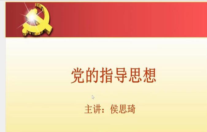 本次党课培训以“党的指导思想”专题党课讲授。侯老师从“什么是党的指导思想”“党的指导思想的确立及其发展历程”“在实践中坚持党的指导思想指导行动”三个方面为大家进行讲解。首先,侯老师向大家系统地阐述了什么是党的指导思想,她强调,中国共产党以马克思列宁主义,毛泽东思想,邓小平理论,“三个代表”重要思想,科学发展观,习近平新时代中国特色社会主义思想作为自己的行动指南。通过讲解党的指导思想的发展历程,使学员们充分理解党课的重要意义。