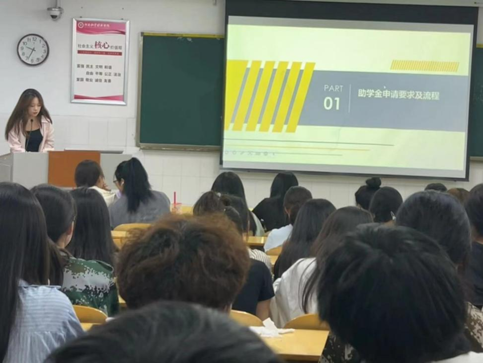 为贯彻落实相关要求,加强学生对资助政策的了解,2024年9月24日晚suncitygroup太阳新城官网资助小组在W教学楼4楼开展了“资助两节课”宣讲活动,资助小组成员以授课形式详尽阐述了“奖、贷、助、补、减、勤”六位一体的资助工作体系、国家助学贷款、国家奖助学金、金融征信知识、防诈骗教育等内容,此次活动,不仅是对国家资助政策的一次深情解读,更是对莘莘学子梦想与未来的温暖护航,旨在提高学生诚信意识、金融意识、法律意识,帮助学生树立正确的消费观、荣辱观和价值观。