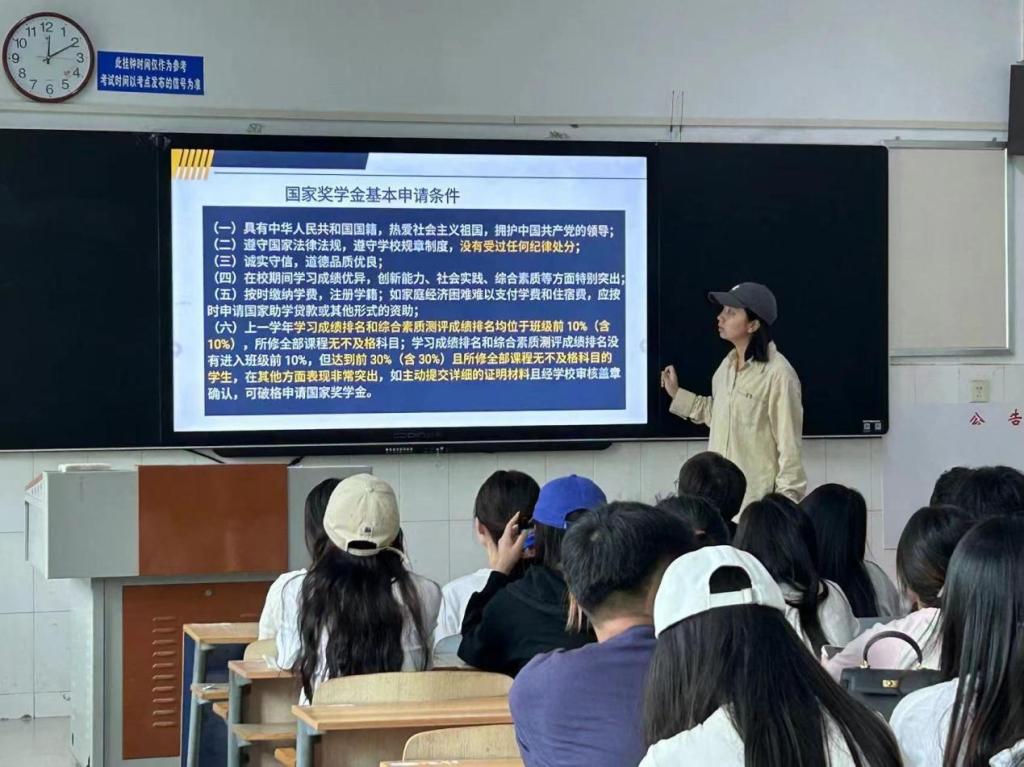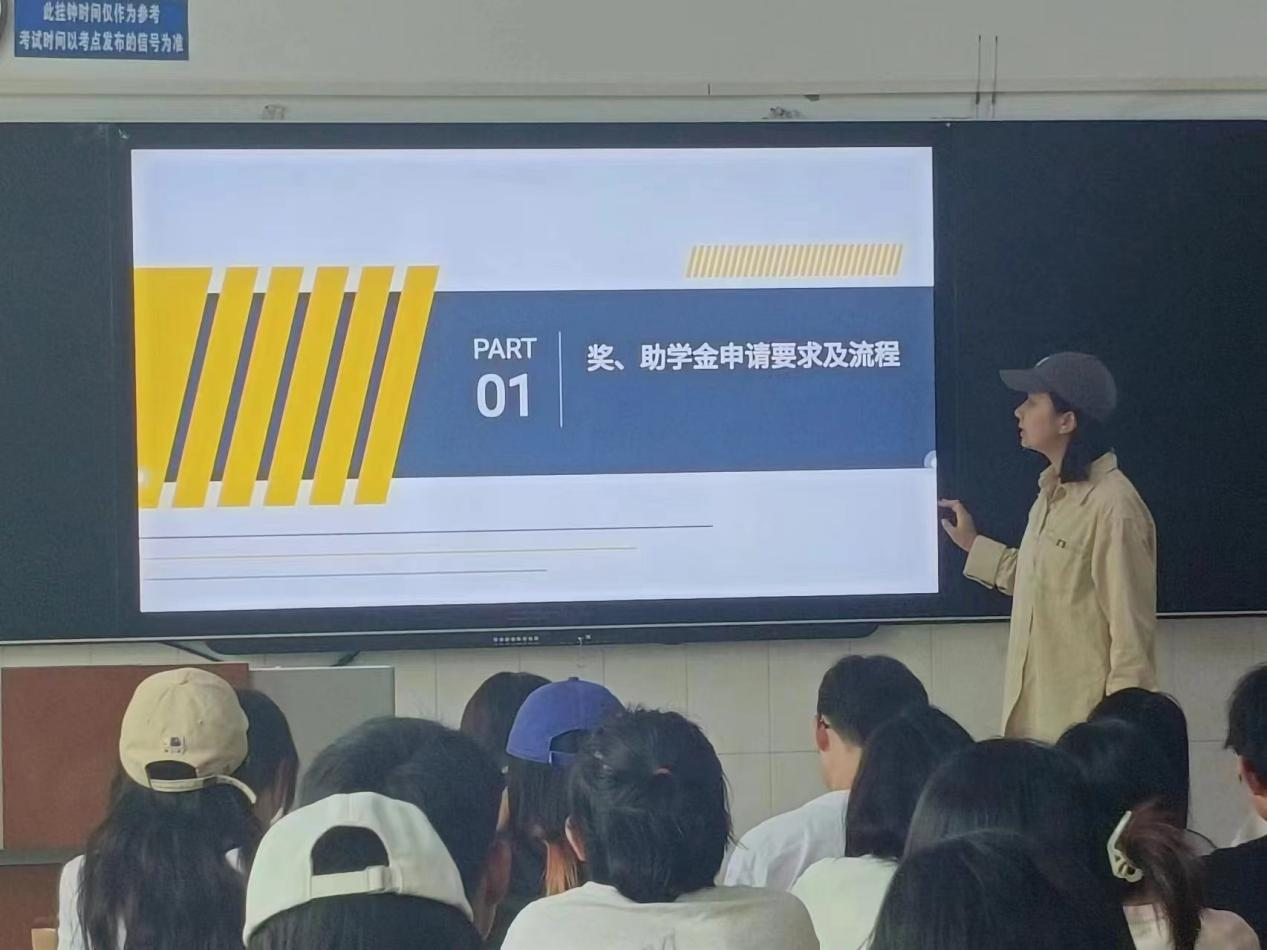 资助小组成员详细介绍了太阳新城官网“奖、贷、助、补、减、勤”六位一体的资助工作体系。重点宣讲国家及学校出台的本学段各项资助政策及申请、评定及公示流程和注意事项,确保下半年国家奖助学金评定时家庭经济困难学生都能得到有效资助,以此激励同学们努力学习、全面发展。