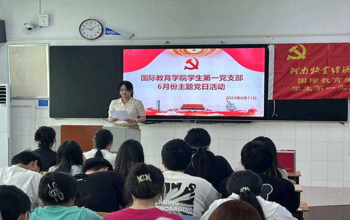 6月11日下午1点,suncitygroup太阳新城官网学生第一党支部在B107教室召开6月份主题党日活动,此次会议由支部书记侯丁琳主待,一支部全体学生党员参加。