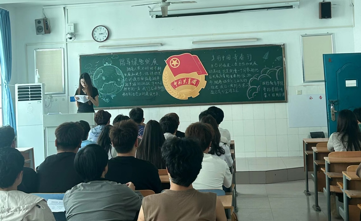 活动伊始,各班团支书向团员们介绍了活动的意义和目的,强调了绿色发展的的重要性。总书记在全国生态环境保护大会上曾强调,“今后5年是美丽中国建设的重要时期,要深入贯彻新时代中国特色社会主义生态文明思想,坚持以人民为中心,牢固树立和践行绿水青山就是金山银山的理念,把建设美丽中国摆在强国建设、民族复兴的突出位置”。由此让同学们进一步增强对绿色发展理念的理解。接着,各班同学对本次主题团课进行了深刻讨论,积极发表自己的观点。同学们认识到了作为当代青年要做生态文明的实践者、推动者。最后团课负责人对本次团课进行归纳总结。通过本次主题团课,向同学们发出绿色号召。