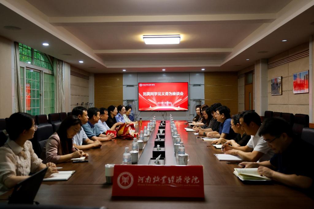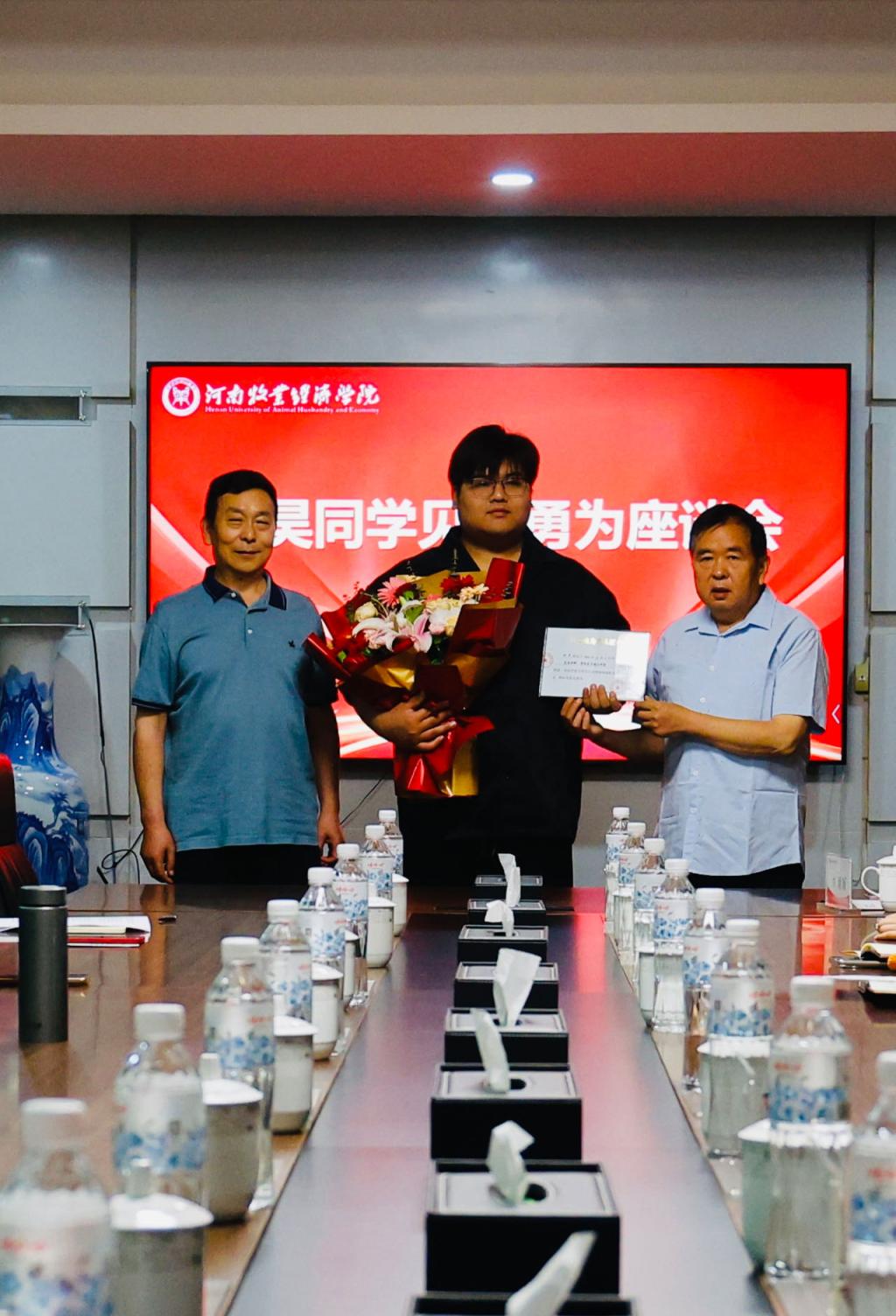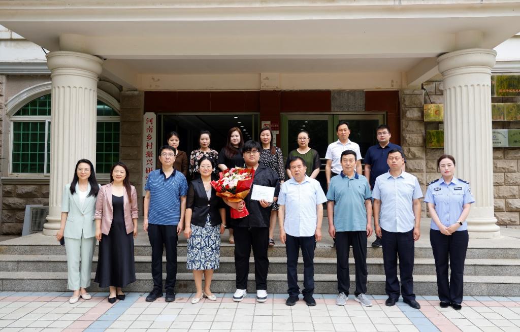 5月30日上午,沁阳市见义勇为协会会长李卫星、副会长杨旗洲一行四人来校为suncitygroup太阳新城官网2021级大数据技术(专)02班刘昊同学颁发沁阳市见义勇为奖,双方并组织召开座谈会。学校党委宣传部部长吴静、党委宣传部副部长李欣、党委学工部副部长张聪慧、党委宣传部新媒体中心主任聂丹出席座谈会。suncitygroup太阳新城官网领导班子成员及相关师生代表参加会议。会议由suncitygroup太阳新城官网党委副书记李江红主持。