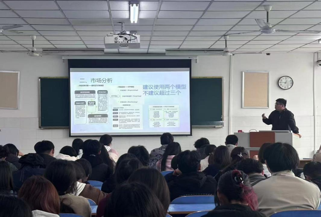 会上,汪维璞从自己的备赛经历出发,讲述了自己参加竞赛的全过程,其中重点分享了项目计划书撰写、团队组建、项目选择等方面的注意事项。常舒畅从三创赛背景与介绍、参赛流程与方式、创新创意在竞赛中的重要性、创业项目在比赛中的价值体现、参赛准备与策略建议等方面进行了系统讲解。自由提问环节,参赛同学围绕从自己的专业情况出发,就大一新生如何合理组建团队,如何选择参赛项目等问题提出疑问,汪维濮和常舒畅做出了细致解答,并鼓励新生同学要勇于尝试,挑战自我。
