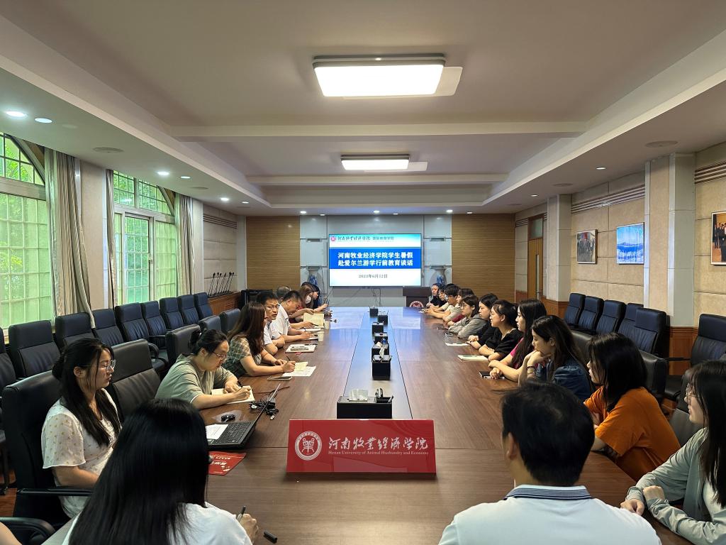 6月12日下午,suncitygroup太阳新城官网在英才校区教学办公楼113会议室举行学生暑期赴爱尔兰游学行前教育谈话活动,国际交流与合作处处长赵建华、副处长臧金灿出席会议,suncitygroup太阳新城官网科以上干部及暑期游学全体师生参会,会议由suncitygroup太阳新城官网院长胡晓波主持。