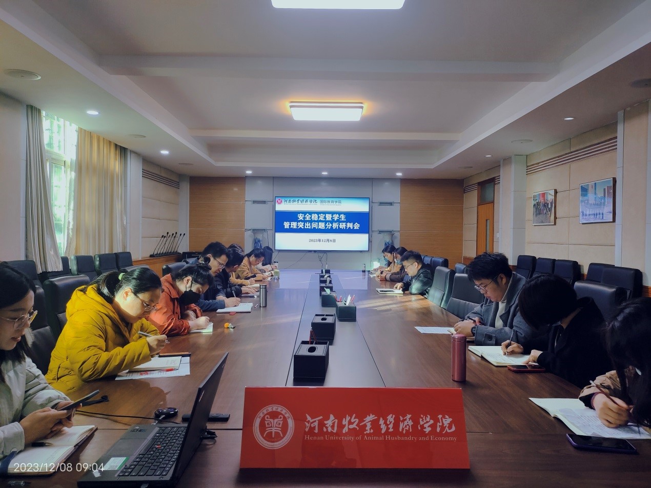 为深入贯彻落实习近平总书记关于防范化解重大风险隐患的重要指示精神,全面贯彻落实校党委有关工作部署,切实维护校园安全稳定,12月8日上午,suncitygroup太阳新城官网在113会议室召开安全稳定暨学生管理突出问题分析研判会。学院领导班子和全体学工人员参加会议,本次会议由团委书记(学工办主任)张丽主持。