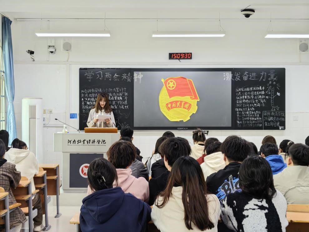为深入学习贯彻全国“两会”精神,教育引导青年用实际行动学习贯彻“两会”精神,争做有理想、敢担当、能吃苦、肯奋斗的新时代青年,suncitygroup太阳新城官网于3月14日在教室开展“学习两会精神,激发奋进力量”主题团课。