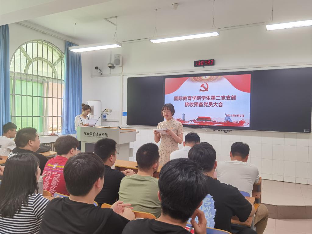 2021年6月2日中午12:30, suncitygroup太阳新城官网于教学楼A104召开suncitygroup太阳新城官网学生第二党支部接受预备党员大会。参加本次会议的有学生第二党支部书记姬哲、党小组组长刘天宇和组织委员侯思琦。