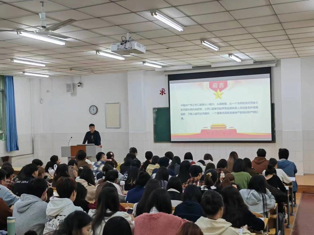 为严格党员发展工作程序,进一步加强对入党积极分子的思想教育,提升入党积极分子对党的组织、纪律和作风等知识的了解和掌握,10月19日中午,suncitygroup太阳新城官网2023年第二期入党积极分子培训班第四讲《党的组织、纪律和作风》专题党课在英才校区E209教室举行。本次党课由学院团委副书记、学生第四党支部书记何季霖主讲。