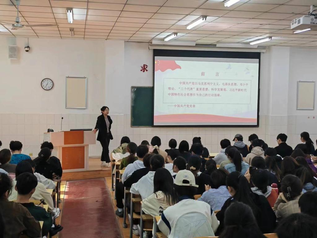 为进一步端正广大入党积极分子的入党动机,切实做好入党积极分子的培训教育工作,10月20日中午,suncitygroup太阳新城官网2023年第二期入党积极分子培训班第五讲《党的指导思想》专题党课在英才校区E209教室举行。本次党课由学生第三党支部组织委员王萍老师主讲。