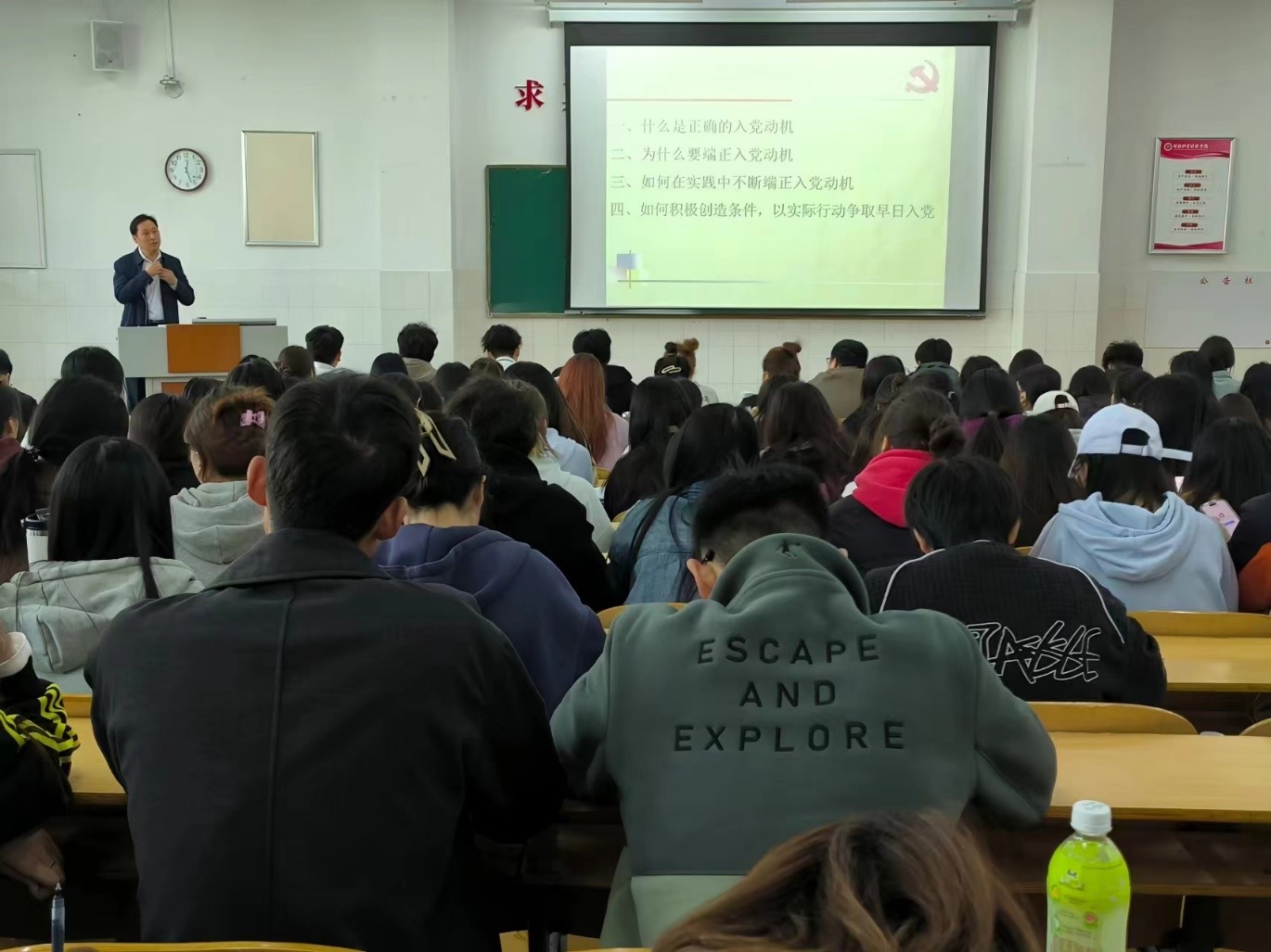 刘超从“什么是正确的入党动机”、“为什么要端正入党动机”、“如何在实践中不断端正入党动机”、“如何积极创造条件,以实际行动争取早日入党”四个方面进行了详细讲解。他指出,端正入党动机是争取入党的首要问题,有了正确的入党动机,才能在困难和挫折面前保持积极乐观的态度,勇于克服前进道路上的不利因素,朝着既定的目标前进;树立正确的入党动机,不是一朝一夕的事,需要经过长时间的努力和锤炼。他勉励同学们要珍惜机会,不断加强学习、提升自身政治理论水平和思想觉悟,在实践锻炼中不断端正入党动机,以实际行动争取早日入党。